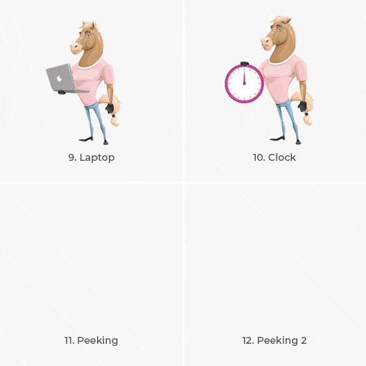 Meet our handsome brown horse cartoon character. Coming in a set of animated GIFs, this horse would be the perfect match for your designs. Developed in 12 different animated GIFs that are ready to use in most of the software options.