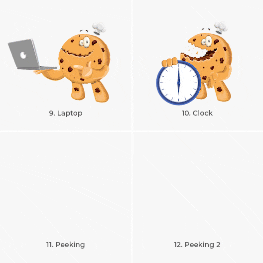 Check out this delicious cartoon cookie character! This dessert character is coming in a set of 12 premade animated GIFs, that will be the perfect finish to your presentations or social media posts. You will find different gestures and items that the cartoon cookie holds.
