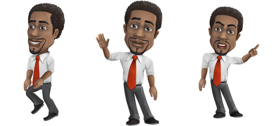 An elegant business character ready to be dropped into Adobe Character Animator. This African American business character is a puppet template with pre-built features. Alfred can wave, give thumbs up, point, express different emotions and lipsync while you talk at the camera. This character is suitable for business-related animations, explainer videos, and more. By downloading, you get the .AI and .Puppet file formats. **Ai file included inside the Puppet file.