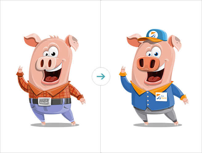 “Can you make this pig look like a courier? I need him to wear a uniform in our company’s colors and I also need our logo implemented on the name badge and the cap. Thanks!”